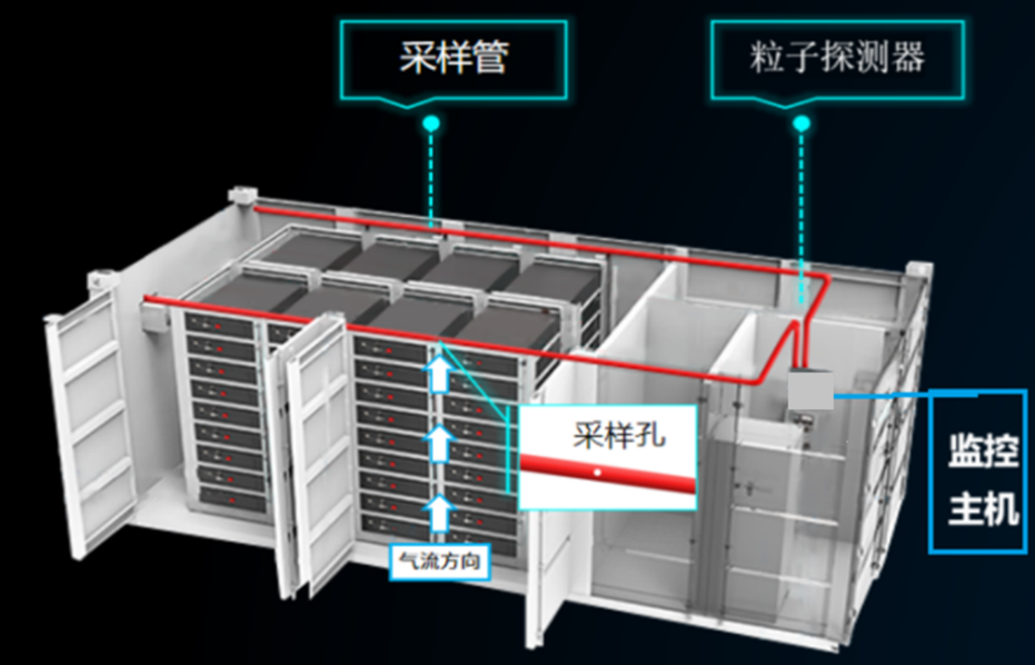 (1)电池本体热失控预警:采用先进的激光技术,采集纳米微粒子和特征气体探测技术,结合电池本体关键参数融合分析,通过AI算法,实现电池热失控早期预警;