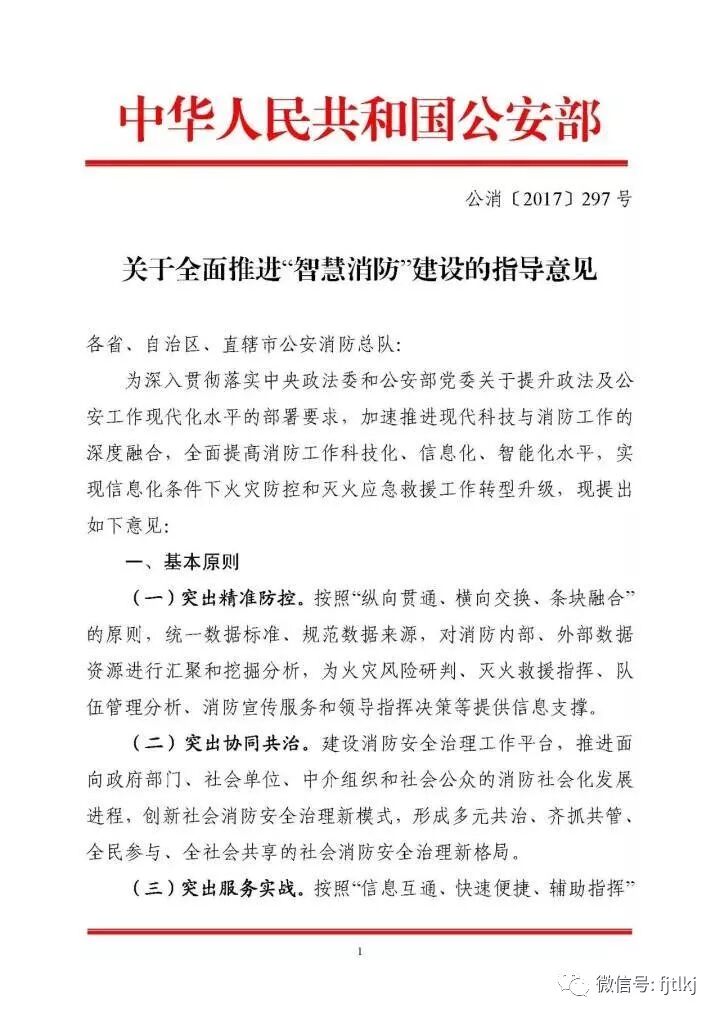 为深入贯彻落实中央政法委和公安部党委关于提升政法及公安工作现代化水平的部署要求,加速推进现代科技与消防工作的深度融合,全面提高消防工作科技化、信息化、智能化水平,实现信息化条件下火灾防控和灭火应急救援工作转型升级,现提出如下意见: